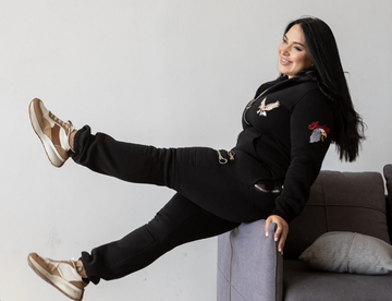 At the same time, it had to look stylish, not like a bag, suitable for any event, whether at home or in a cafe. This meant that the fabric had to be of the right quality. And most importantly, the fit. It had to be comfortable to bend over and lie down and sit up and stand up. I was looking for a second-skin effect. And it had to be a suit that emphasizes the figure and hides flaws, not like a shapeless bag.