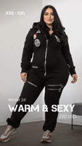 The jumpsuit is fleece insulated. It is recommended to wear the jumpsuit in spring and autumn over a T-shirt to maintain a comfortable temperature without the necessity to wear an additional jacket. In winter, the overalls with jackets can withstand up to -25 °C. In addition, a neat hidden zipper in the lower back is available upon request.